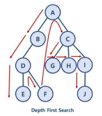 노드의 자식 노드를 먼저 탐색하는 방식