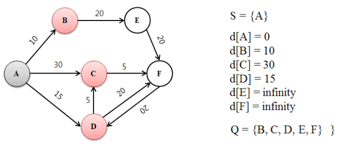 첫 정점을 기준으로 연결되어 있는 인접노드를 추가해가며 최던 거리를 갱신