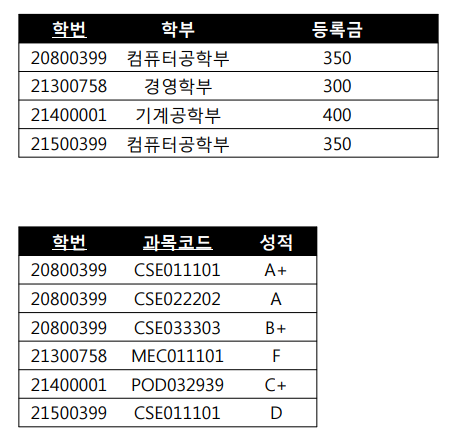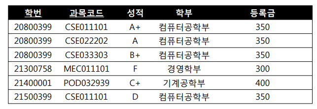 ex) 학번이 성적, 학부, 등록금에 영향을 끼치고