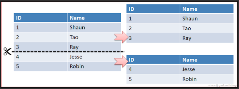 -관계형 데이터베이스에서 대량의 데이터를 처리하기 위해서 데이터를 파티셔닝 하는 기술