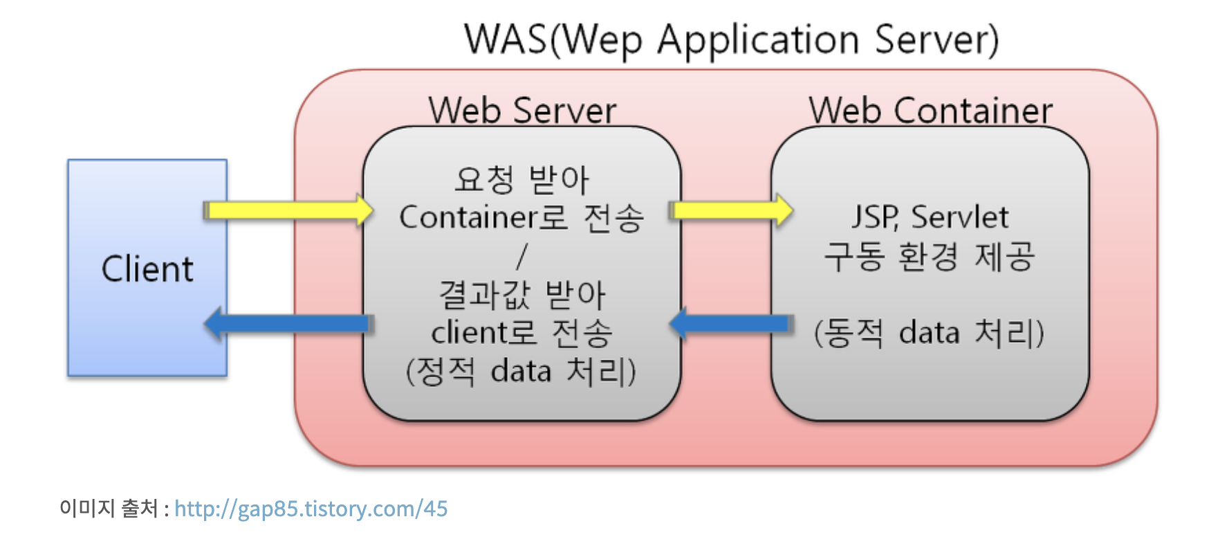 : web서버와 연동하여 실행할 수 있는 자바환경을 제공하여 JSP와 서블릿의 실행환경을 지원