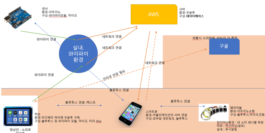 : 웨어러블 기능 축소 (야외에서 소리만 청음하여 사용자에게 진동과 화면 알림 기능만 구현)