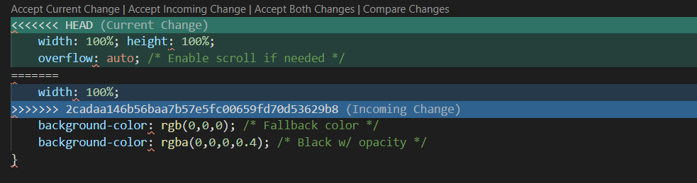 ※ Accept Incomming Change : 대상 브랜치의 변경 내용으로 변경