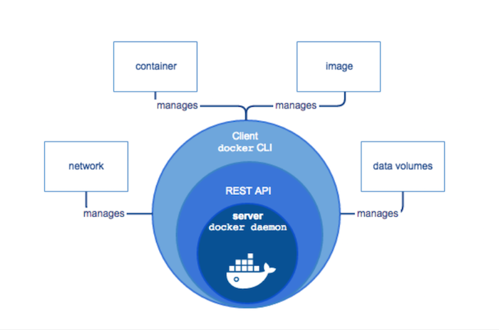: UNIX 소켓 혹은 네트워크 인터페이스를 통해 REST API로 서버(도커 데몬)와 통신
