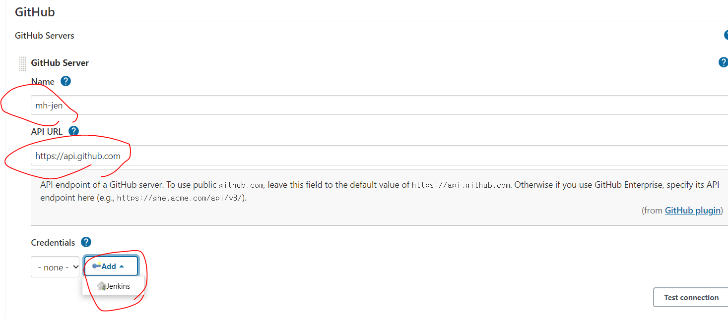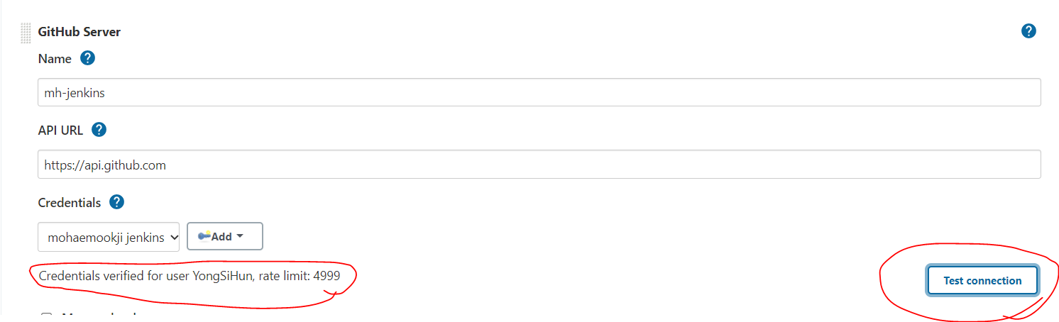 11. 깃허브 서버 Credential을 Add하고 Test connection을 수행