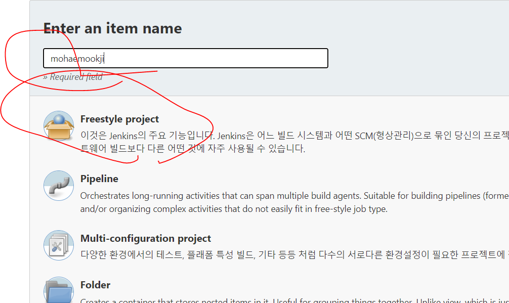 2. 프로젝트 이름 기입 및 Freestyle project로 설정
