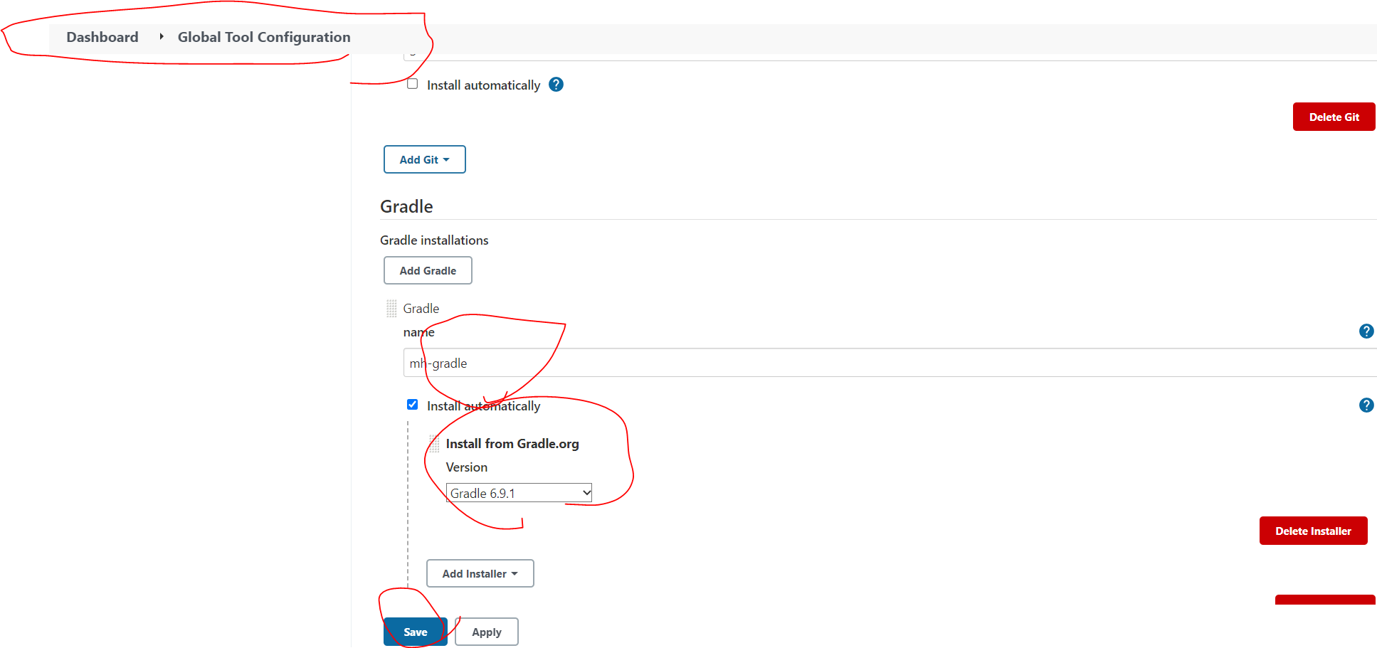 Jenkins 관리 > Global Tool Configuration > Gradle installations > save