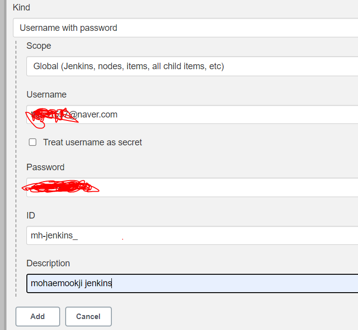 : ID에는 젠킨스에서 따로 사용할 아이디 입력