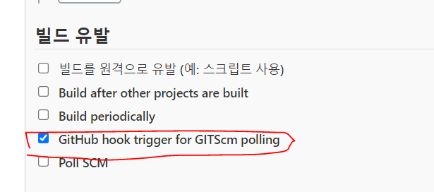 8. 빌드 유발에서 깃허브 훅이 반응할때 빌드가 유발되도록 체크