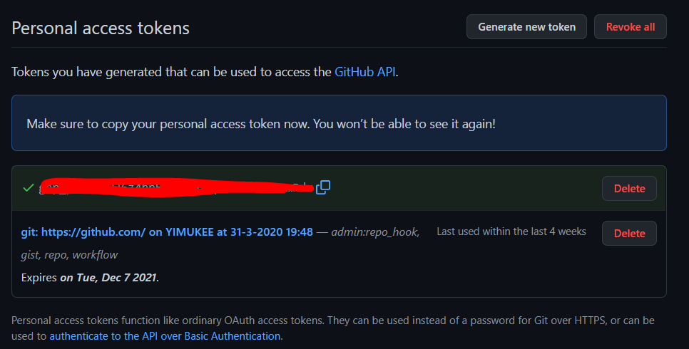 : 이후로 토큰 키를 다시 확인할 수 없으니 끝날때까지 창을 닫지 않도록 주의
