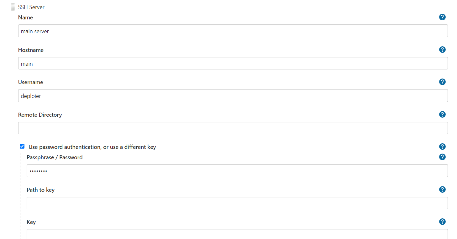 : Use password ~~ 체크 후 배포 서버에 접속하는 사용자 계정의 패스워드 입력