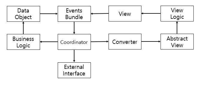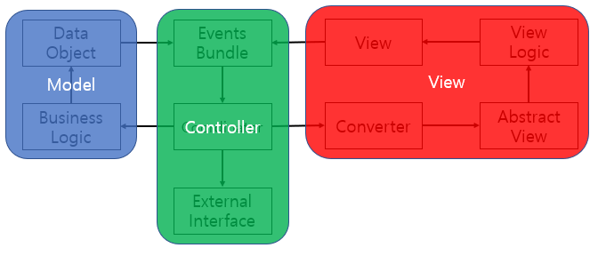 : 중앙에서 이벤트 핸들링이나 비즈니스 로직을 제외한 기타 로직이 위치