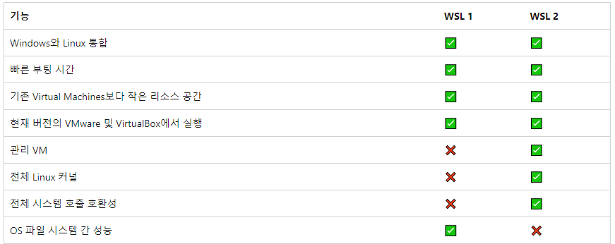 WSL 1.0과 WSL 2.0 비교