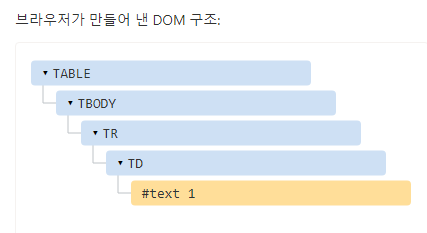 : DOM에서는 <tbody>가 필수라고 하지만 HTML에서는 생략할 수 있음