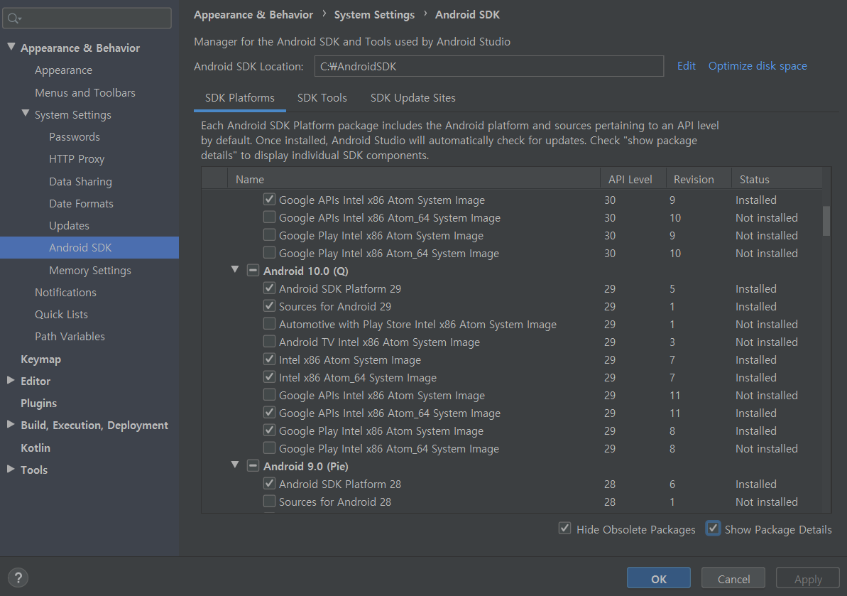 안드로이드 SDK를 설치할 수 있게 되었다.