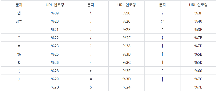 URL 특수문자 인코딩표