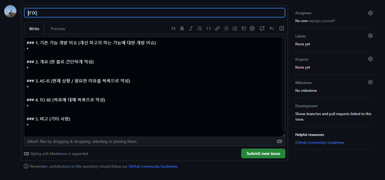 - 이슈 등록 템플릿 작성