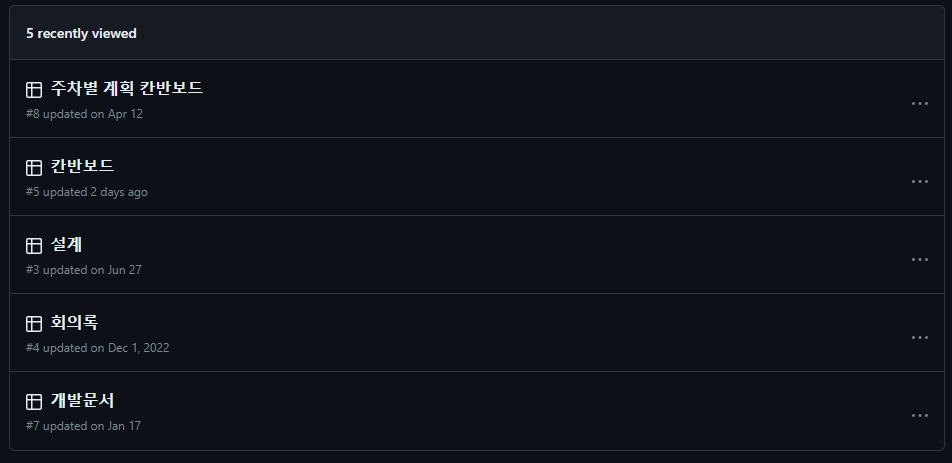 : 프로젝트를 다시 시작하면서 로컬 파일로 저장하던 문서를 깃허브 organization의 projects를 활용하여 깃허브 하나로 관리할 수 있도록 개선했었으나, 관리의 문제인지 뒤죽박죽 섞여있는 느낌이 강했다