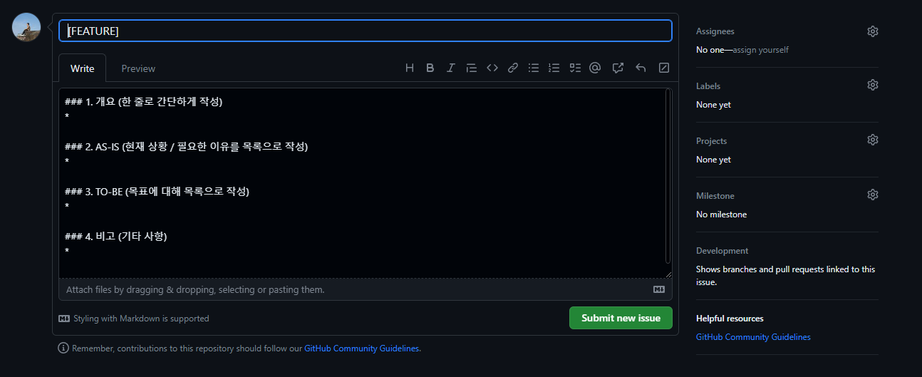 새로운 이슈 템플릿 생성
