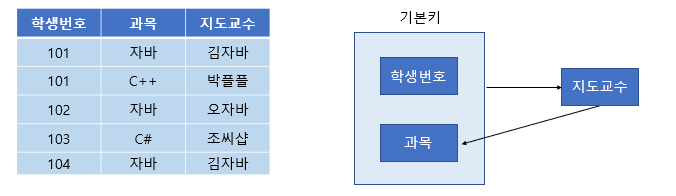 : 지도 교수와 과목에 대해 따로 테이블로 분리하여 해결한다
