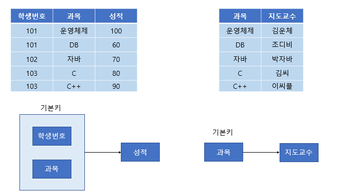 : 학생 번호와 과목이 기본키인데, 지도 교수의 경우 과목만 알면 알 수 있음