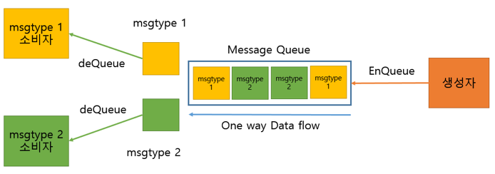 - 구조 : FIFO 구조 / msgtype에 따라 다른 구조체를 통해 통신 가능