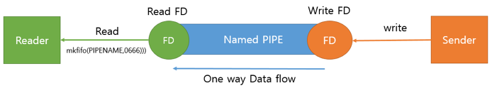 - 구조 : FIFO구조 / 생성된 PIPE에 대하여 Write 또는 Read만 가능