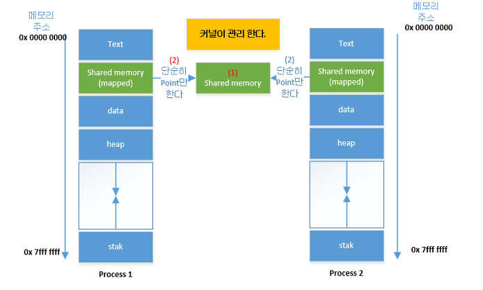 - 시스템 상의 공유메모리를 통한 통신