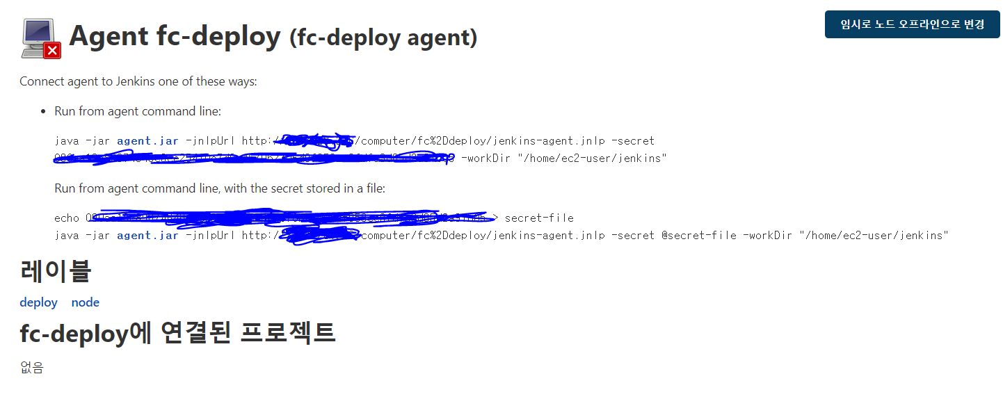 : Run from agent ~~~, with the secret ~~아래 명령어 사용을 권장